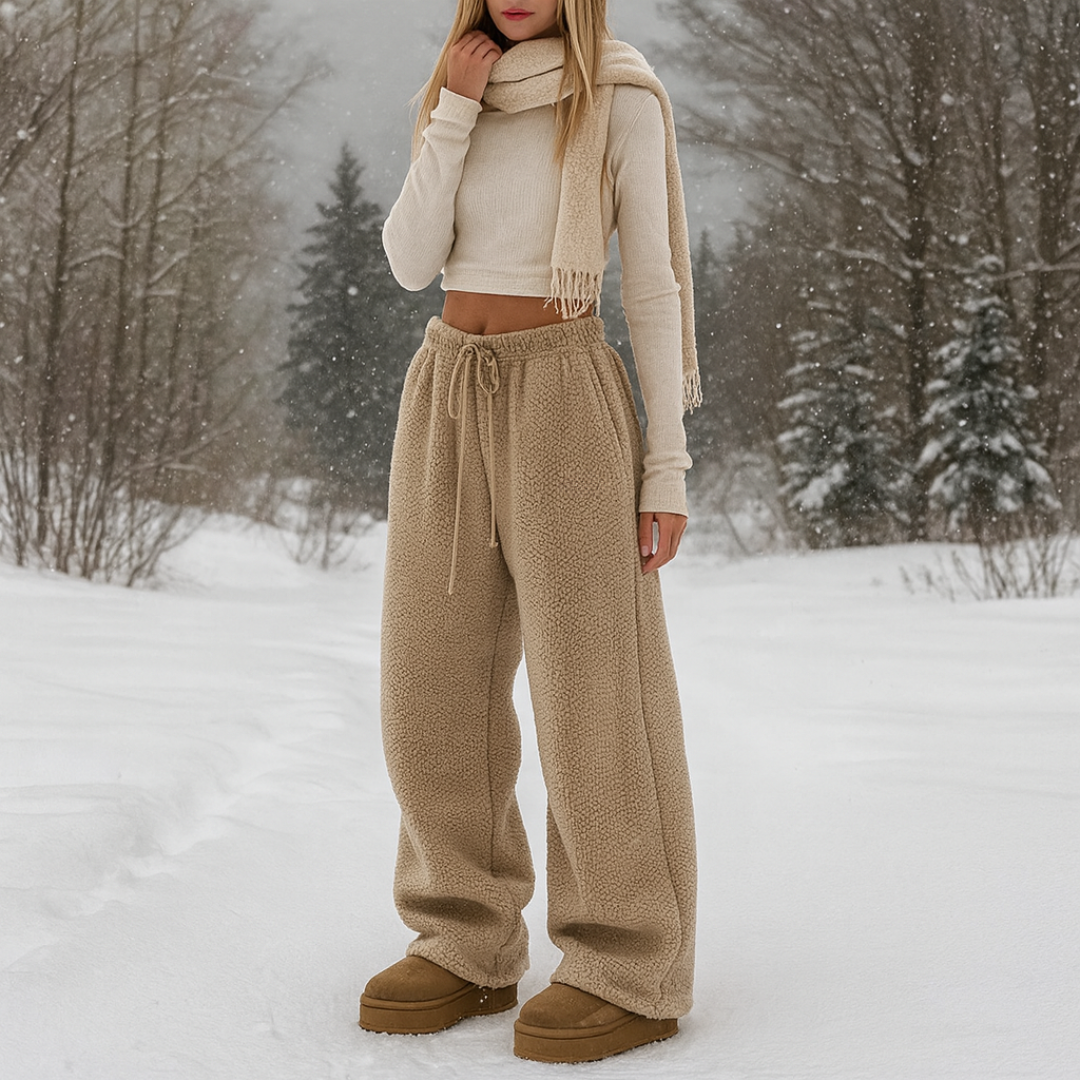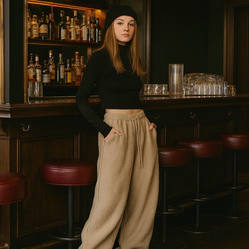 They’re crafted from ultra-soft sherpa fleece that feels cloud-like against the skin, combining warmth, structure, and breathability in a premium oversized silhouette.