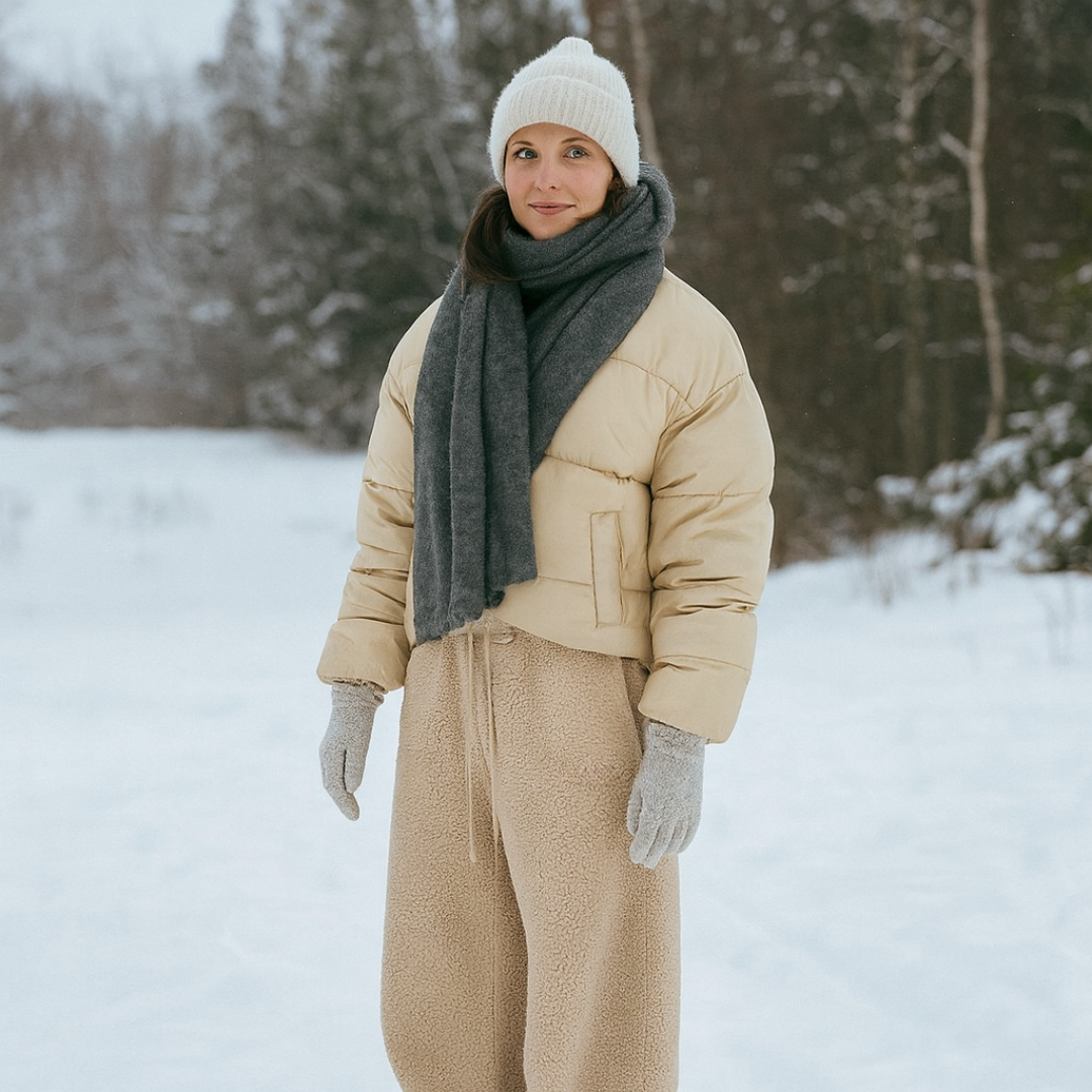 Born from winter’s stillness, our pieces keep you warm when the world turns cold. The plush fleece insulates gently, offering cozy protection without weight.